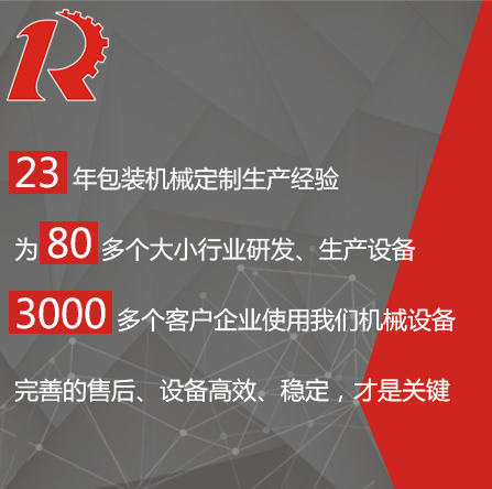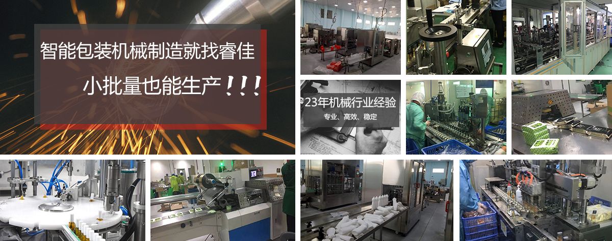 廣州市睿佳機械設備有限公司是國內(nèi)專業(yè)從事自動化包裝機械產(chǎn)品,集研發(fā)、生產(chǎn)、銷售、服務于一體的制造公司,已通過ISO9001:2008質量體系認證,部分系列產(chǎn)品已通過歐盟CE認證。 經(jīng)過多年的發(fā)展,公司專業(yè)生產(chǎn):封尾機,灌裝機,旋蓋機,貼標機,包裝機,輸送機,噴碼機,灌裝生產(chǎn)線等機械設備。企業(yè)以開發(fā)生產(chǎn)包裝機械和訂做特殊包裝機械為主,所生產(chǎn)的包裝機械在同行和客戶中都得到一致的贊賞,以高技術和穩(wěn)定的質量遠銷東南亞和歐美。在國內(nèi),也成為多家知名藥廠、食品廠、化妝品廠指定使用產(chǎn)品。 睿佳機械:“想客戶之所想,急客戶之所急”既是睿佳對廣大客戶的承諾也是睿佳的宗旨,睿佳將與時代同步、銳意進取,以更優(yōu)質的服務回報廣大客戶對睿佳的信賴和支持。